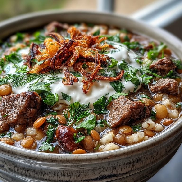 Pin It I first encountered this specific aroma in a small kitchen where the windows were fogged up from the steam of a bubbling pot. It was a cold Tuesday and the scent of fried mint and turmeric felt like a warm blanket. My friends mother insisted that the secret to a happy home was a pot of soup that simmered all afternoon. I watched her hand chop bundles of herbs with a speed that seemed impossible. That day I realized that barley and beef were destined to be together.