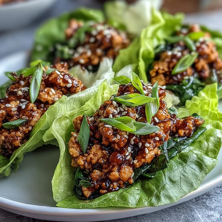 The entire filling comes together in fifteen minutes once you've prepped your ingredients, which means this is a legitimate weeknight dinner, not a weekend project. The key to keeping everything fresh and crisp is assembling right before you eat rather than an hour ahead—the warm filling will begin softening the lettuce the moment it makes contact, and after twenty minutes even butter lettuce starts to look tired. If you're cooking for guests, you can prep the filling ahead and reheat it gently in the skillet while they settle at the table, then assemble everything together. Keep your lettuce leaves separate until the last moment, store them between damp paper towels if you're not using them immediately, and arrange them on a platter ready to fill.