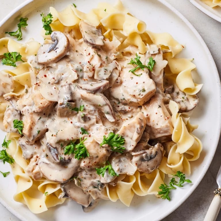 Pin It The first time I plated this for friends, I worried it looked too plain, just noodles and chicken under a beige sauce. Then someone took a bite and went quiet for a second, and I remembered that comfort food doesn't need to be fancy. It just needs to taste like you meant it.