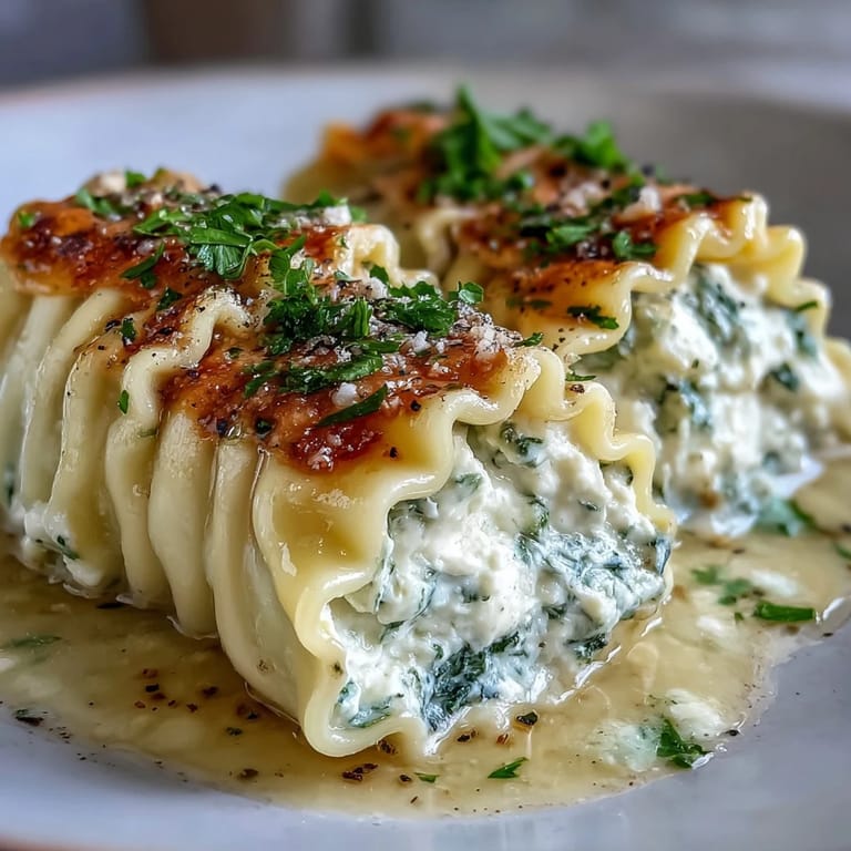 There's something psychologically easier about plating an individual roll-up instead of trying to cut a clean square from a layered pan. Each serving feels intentional and elegant, even though you're really just rolling up the same filling you'd be spreading in layers. The garlic butter pooling around each roll-up also means every forkful has sauce, whereas traditional lasagna sometimes ends up dry in the middle sections of the pan.