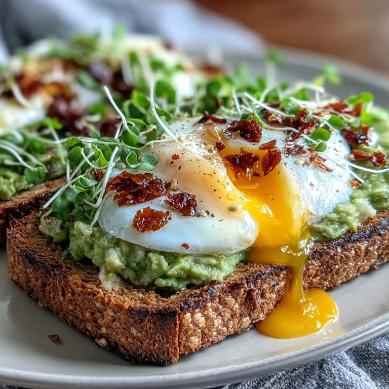 Pin It There's something about a soft-boiled egg that makes mornings feel intentional. I discovered this toast combination on a Tuesday when I was rummaging through my fridge with nothing but half an avocado, a couple of eggs, and a growing pile of microgreens I'd impulse-bought at the market. What started as breakfast improvisation became a ritual I couldn't shake, especially once I realized how the runny yolk creates its own sauce the moment it touches warm toast.