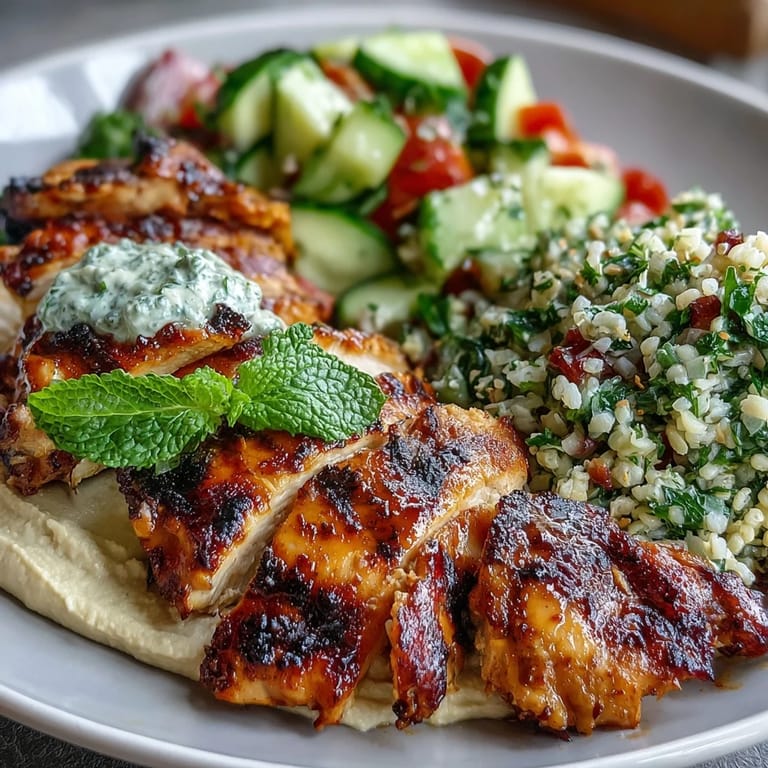 The beauty of this meal is that you can assemble it without everything finishing at exactly the same moment. Start the chicken marinade first, then while it sits, make the tabbouleh and let it chill. The hummus can happen anytime. By the time you fire up the grill, everything else is already waiting, which means less stress and more time to focus on grilling the chicken correctly.