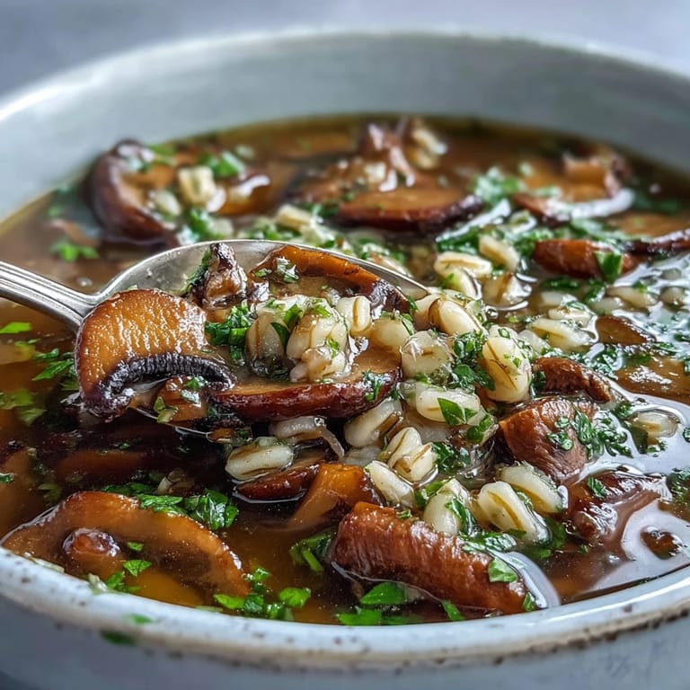 Pin It The first time I really understood the power of a mushroom was on a Tuesday afternoon when the rain would not stop hitting my kitchen window. I pulled a dusty bag of dried shiitakes from the back of the pantry and realized they smelled like the damp forest floor in the best possible way. This soup started as a simple pantry cleanout but quickly became my ultimate rainy day ritual. It fills the whole house with a savory scent that feels like a warm hug. Now I make sure to always have barley on hand for these exact moments.