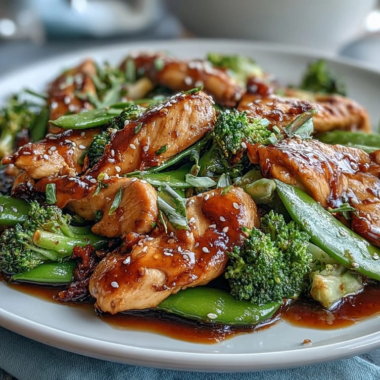 Pin It This Asian-inspired stir-fry showcases the beautiful simplicity of letting fresh ingredients shine. The bright green broccoli and snap peas retain their perfect crunch, while the red bell pepper adds a sweet counterpoint to the savory chicken. The sauce, though light, coats every ingredient with just enough flavor to make each bite memorable without weighing down the dish.