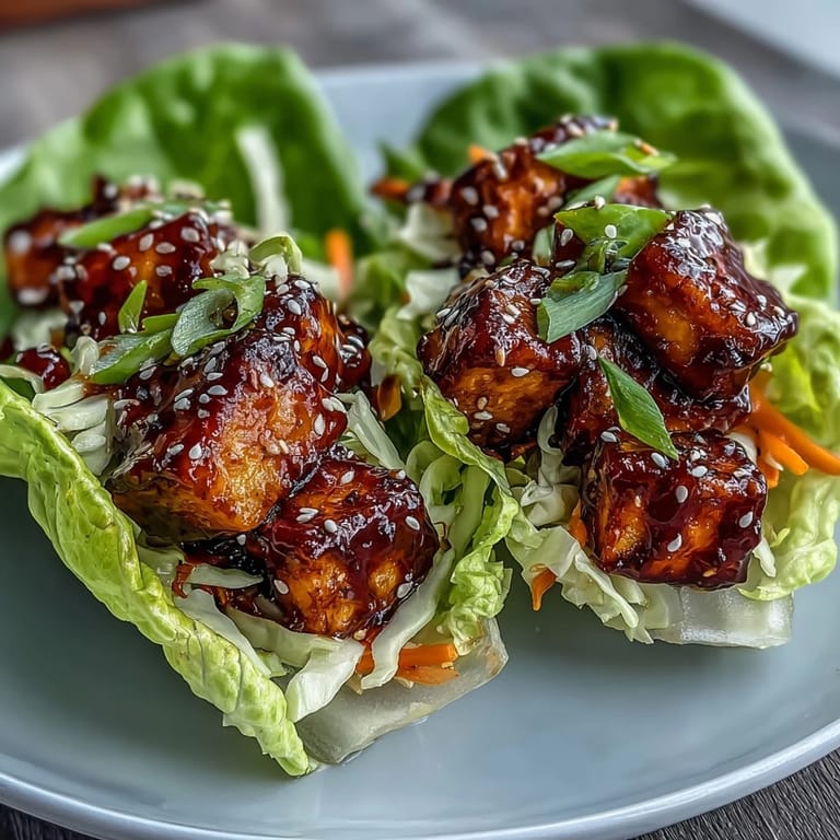 Pin It My friend texted me at 4 PM on a Tuesday asking what to bring to a dinner party, and I found myself describing these lettuce cups with such enthusiasm that she asked for the recipe right then. There's something about the contrast of crispy, glossy tofu against cool, fresh lettuce that makes people pause mid-bite and ask what just happened in their mouth. The sweet chili glaze catches the light like it's been professionally plated, but honestly, it comes together in a small bowl while your tofu is already crisping up. I've made these for everything from casual weeknight meals to impressing people who swear they don't eat tofu, and somehow they always finish their plate first.
